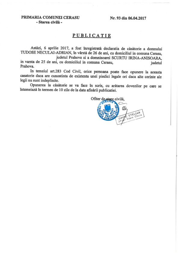 2. Publicatia nr. 93 din data de 06.04.2017 (Tudose Neculai-Adrian si Scurtu Irina-Anisoara)