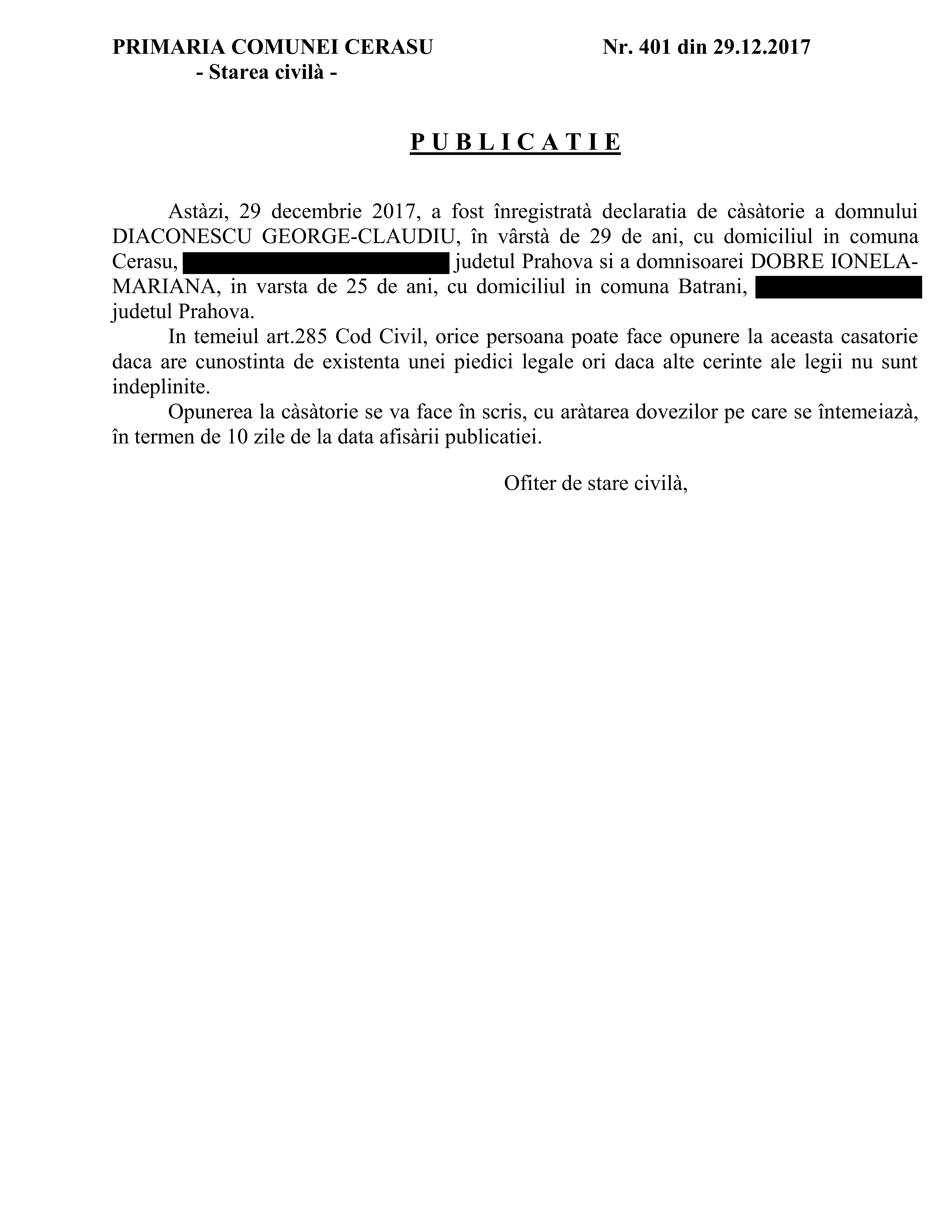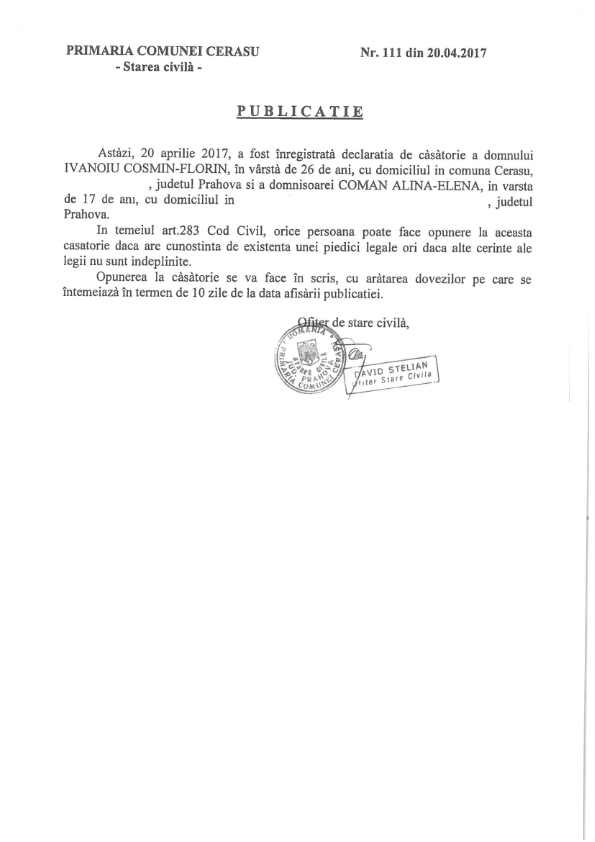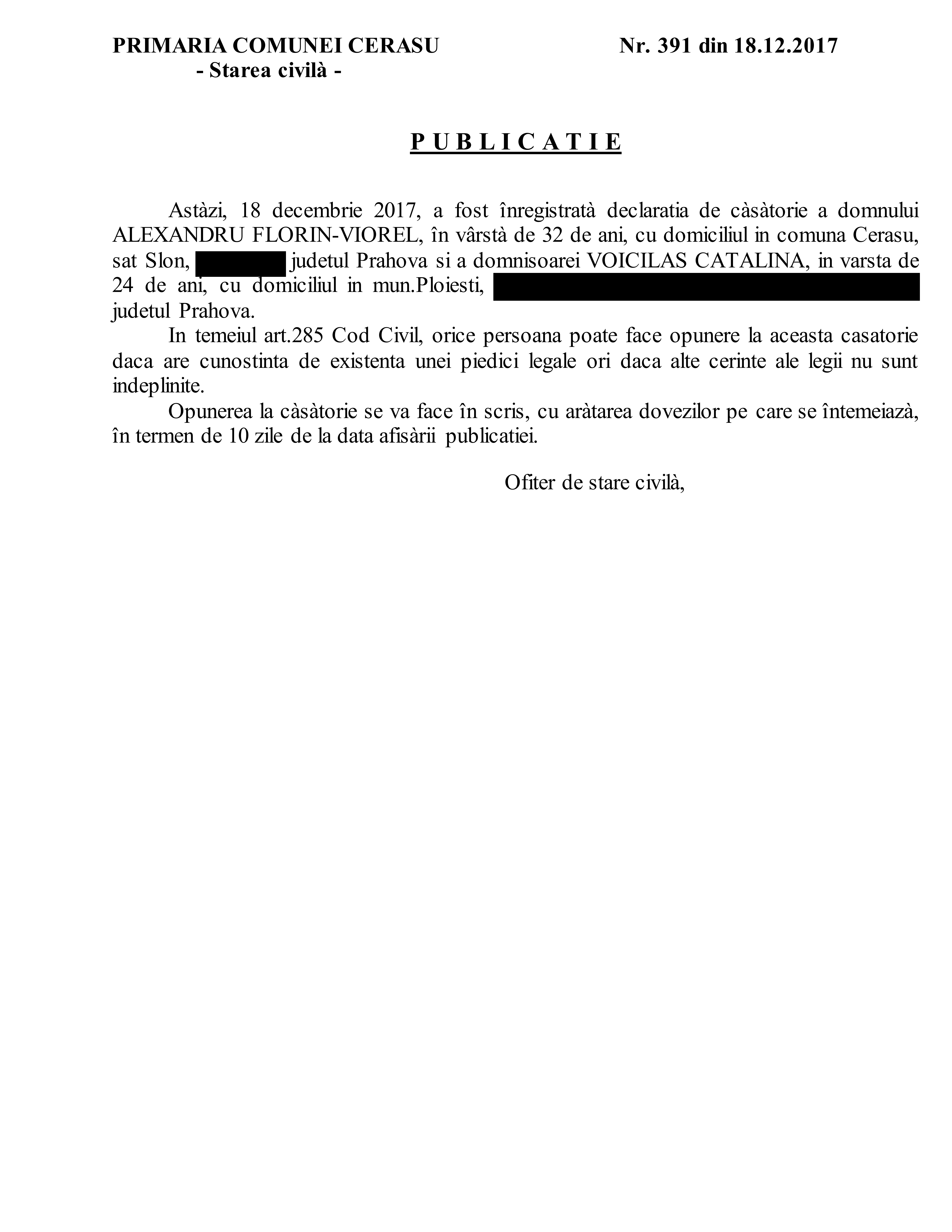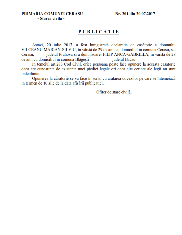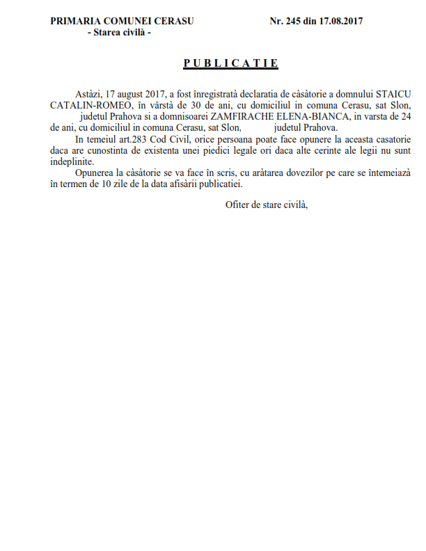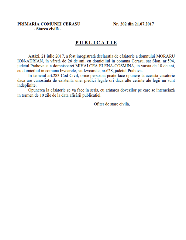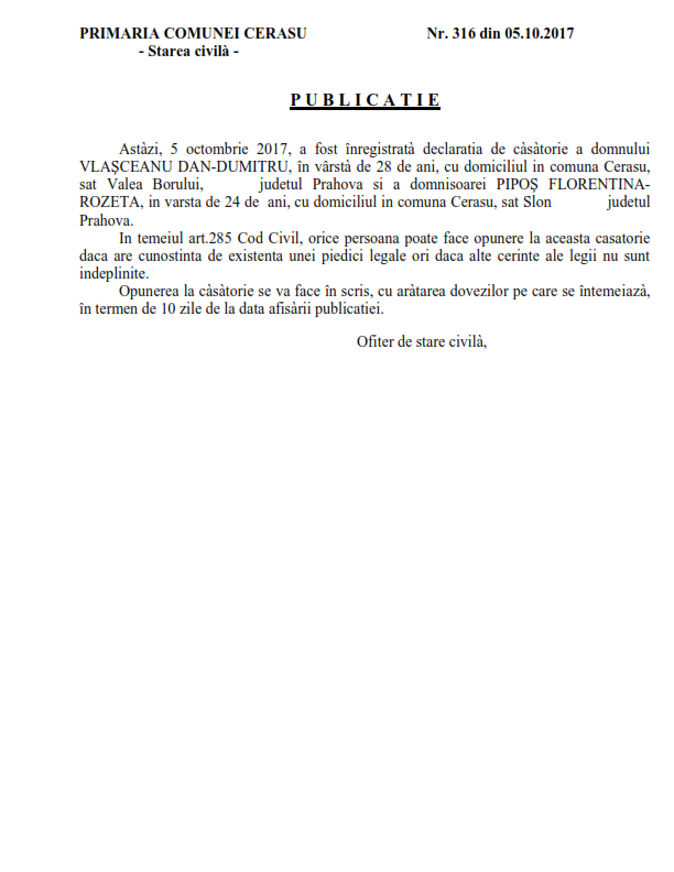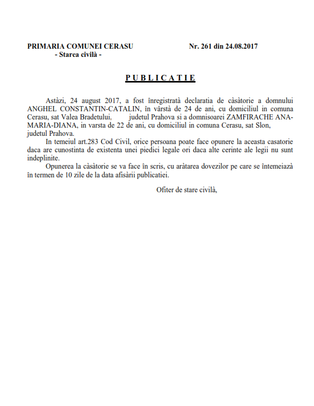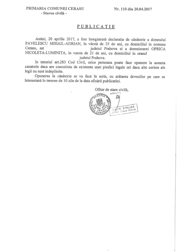 6. Publicatia de casatorie (Soare Constantin-Catalin si Mihai Madalina-Alina);