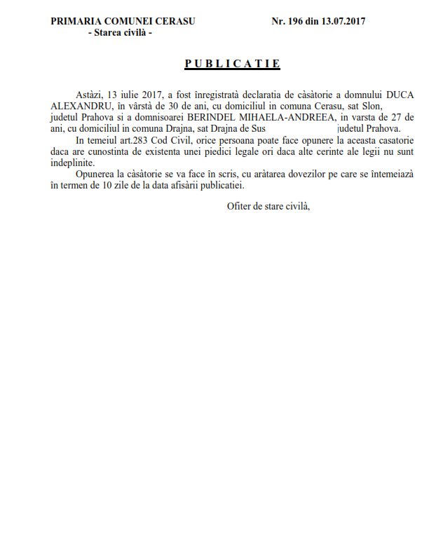 11. Publicatia nr. 196 din data de 13.07.2017 (Duca Alexandru si Berindel Mihaela-Andreea)
